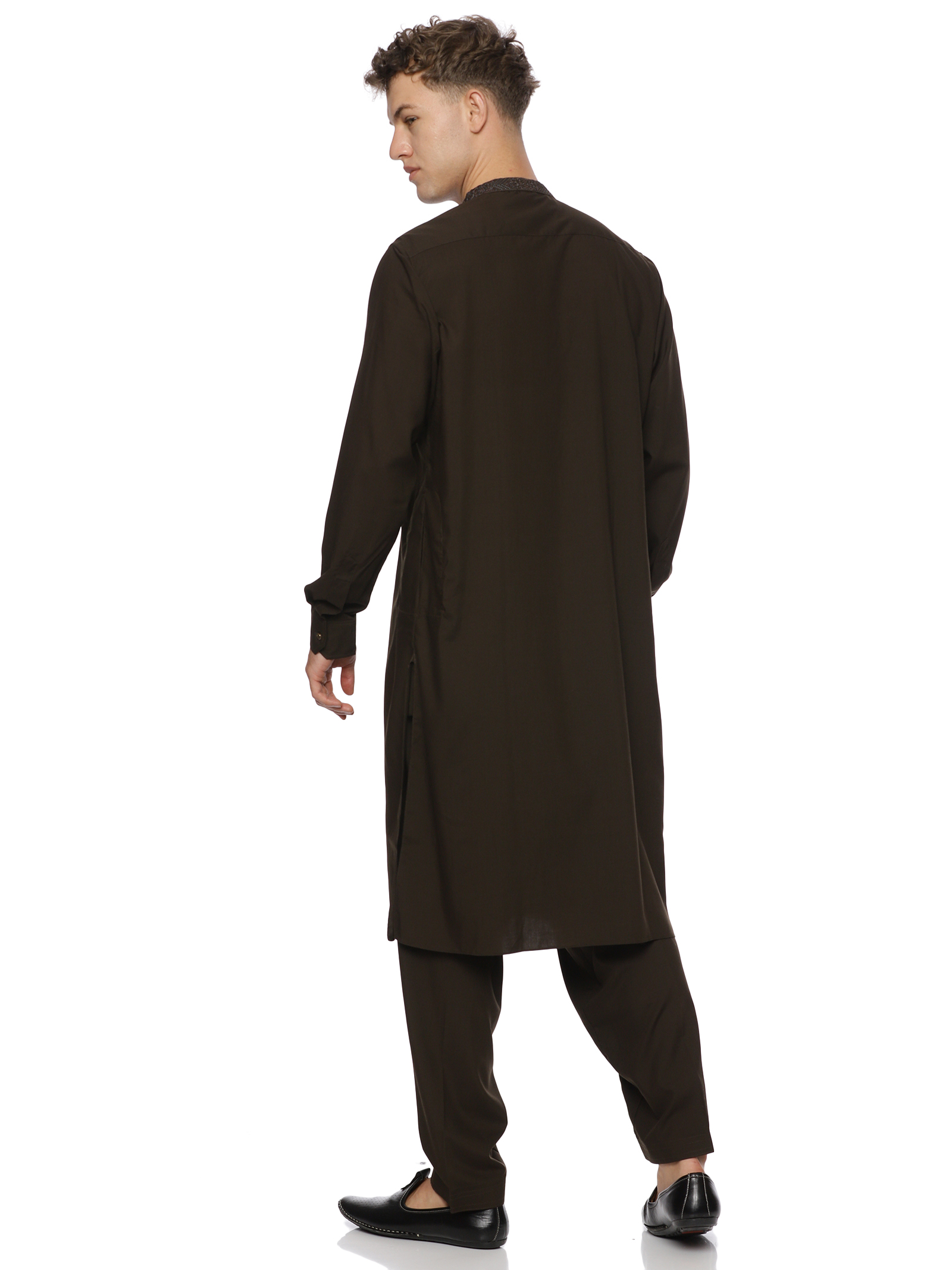 Designed for a sharper, more structured appearance, this green formal kurta trousers set offers a modern fit with clean lines. The kurta features subtle detailing, while the straight-cut trousers ensure a neat silhouette. Perfect for events, workdays, or weekend wear.